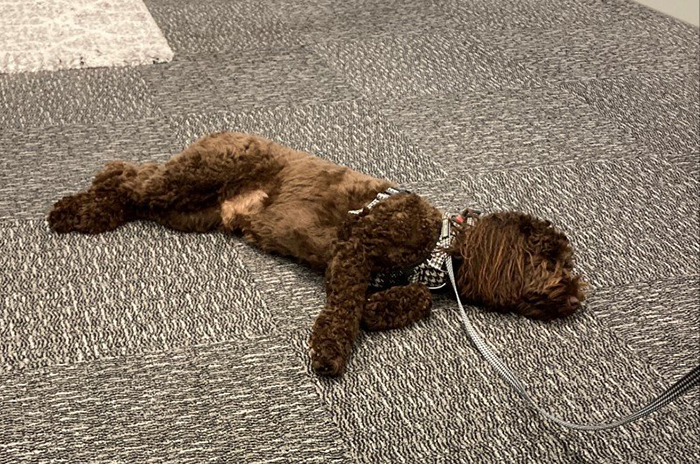 The day before a dog visits the office, the owner is asked to post a picture on Workplace to let the team know where he/she will be located. For health and hygiene reasons, they aren’t allowed in kitchen areas, and must stay off office furniture.